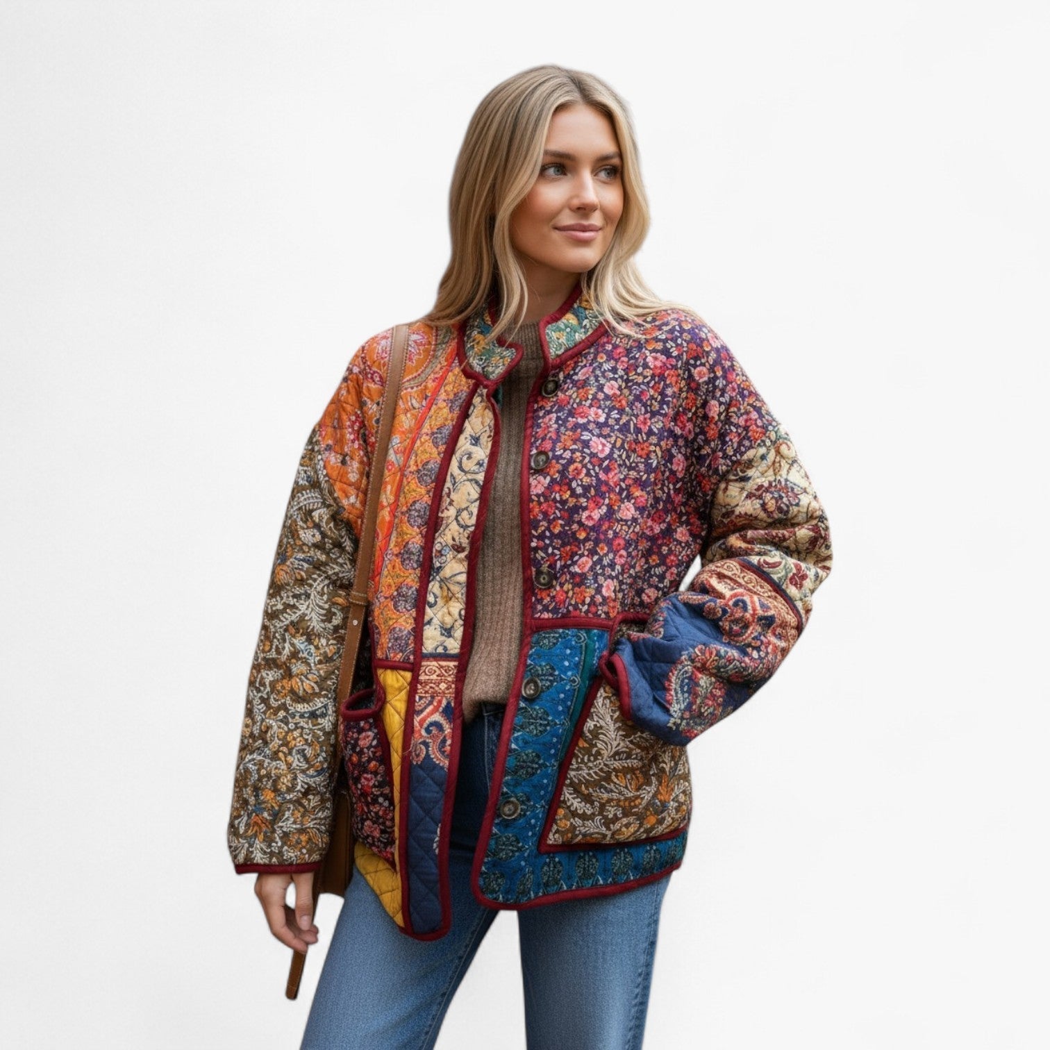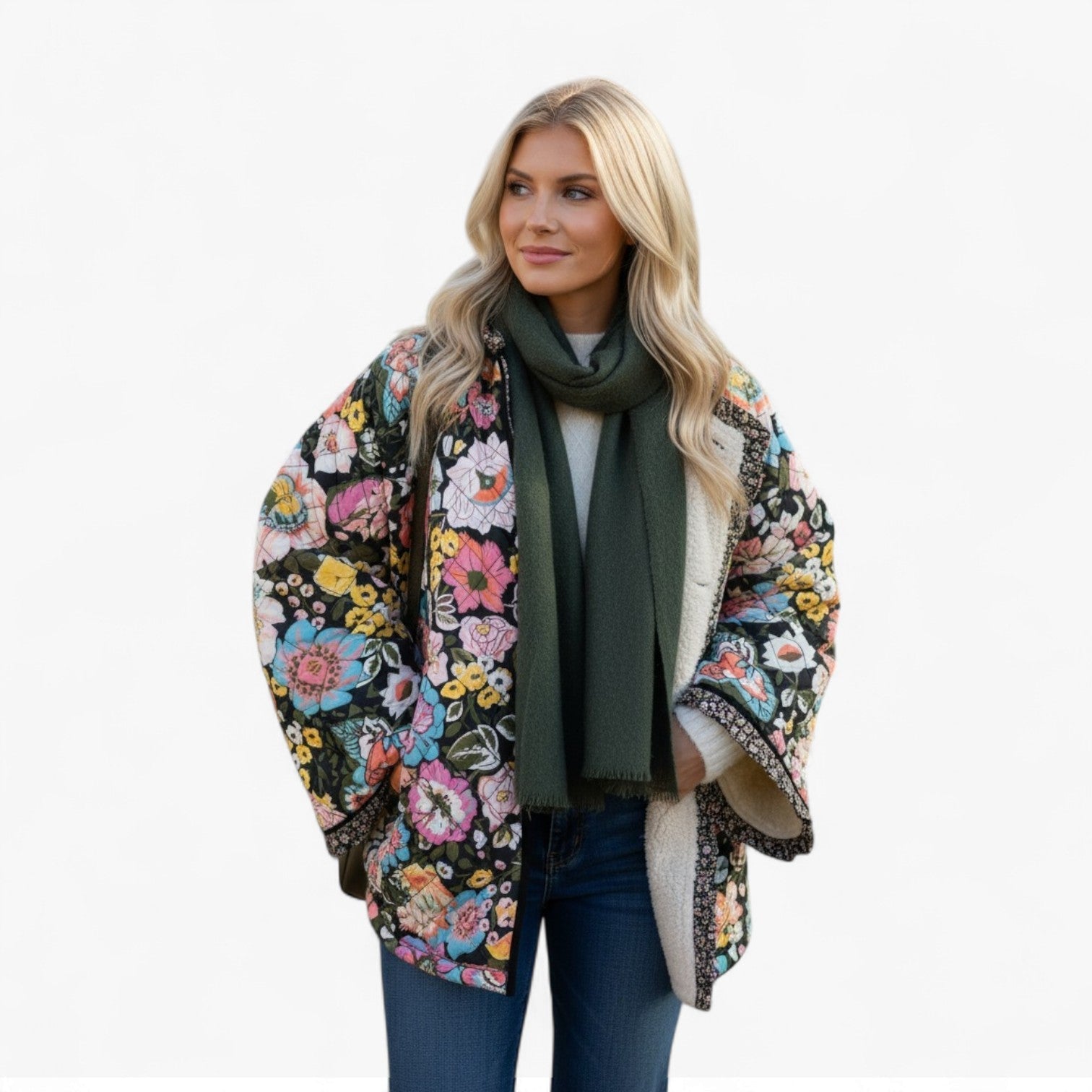 Diese wendbare Jacke mit Blumenmuster ist die ideale Ergänzung für Ihre Wintergarderobe. Sie vereint ein wunderschönes Blumenmuster auf der Außenseite mit einem weichen Innenfutter und bietet sowohl Stil als auch Wärme für den Alltag und besondere Anlässe.