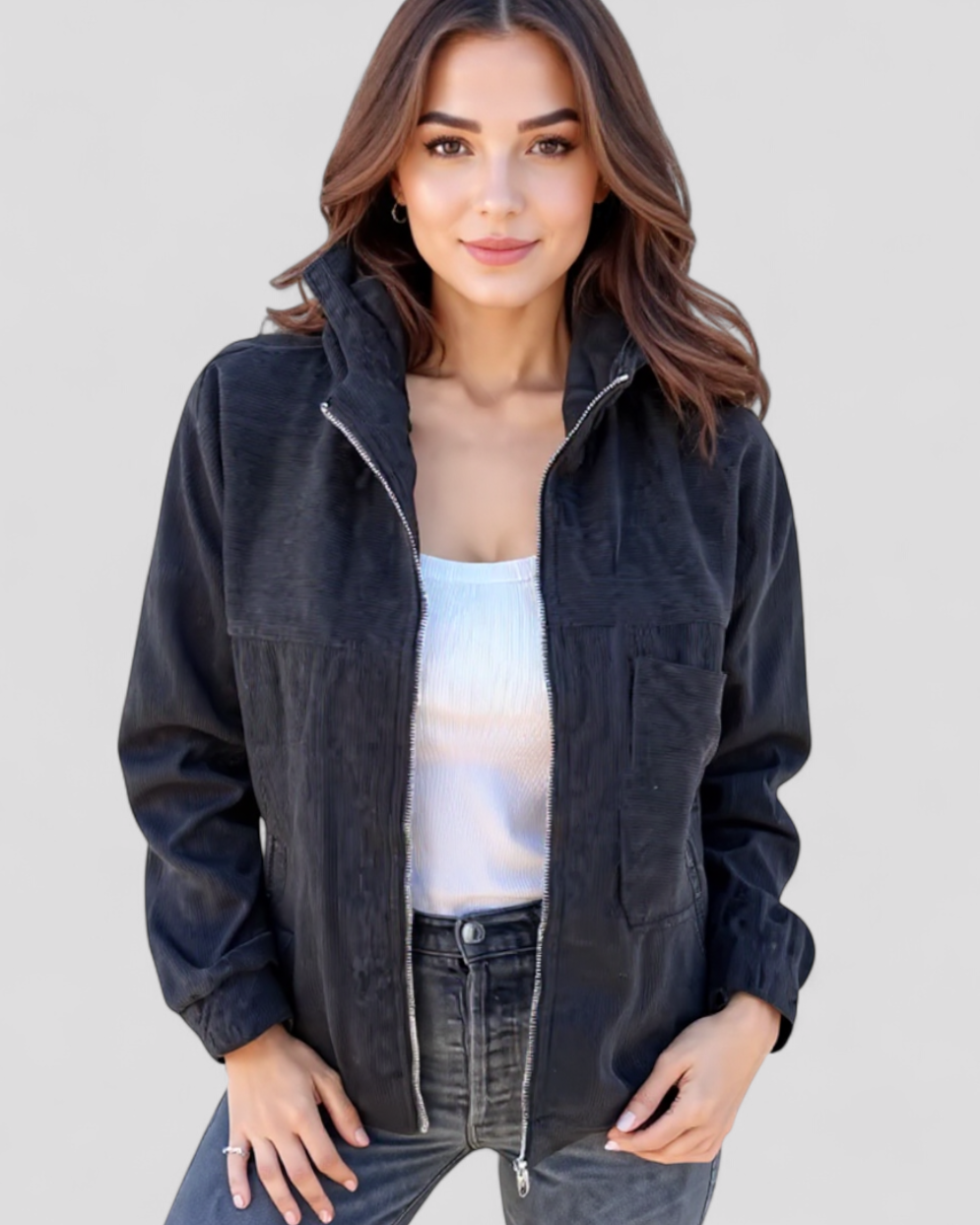 Erleben Sie die perfekte Kombination aus Stil und Funktionalität mit dieser Velours-Winterjacke. Entwickelt für Frauen, die sowohl Wert auf Komfort als auch auf Mode legen, bietet diese Jacke Wärme und Vielseitigkeit an kalten Tagen.