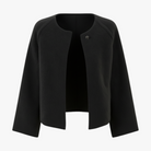 Der klassische Rundhalsausschnitt verleiht eine Extraportion Raffinesse und macht diese Jacke zu einem vielseitigen Begleiter, der sich mühelos vom Tag in den Abend stylen lässt. Ob über einem Kleid oder zu einem lässigen Look – sie ist immer schick und unkompliziert.