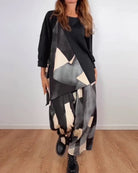 Lässiges zweiteiliges Set mit geometrischem Muster und Hose mit weitem Bein