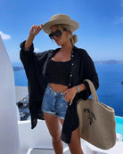 Ein luftiges, weißes Hemd mit einem auffälligen, mit Pailletten besetzten Auge auf dem Rücken – perfekt für Strandtage oder Dinner am Meer. Leicht und entspannt geschnitten, fällt es locker und verleiht Ihrem Look eine raffinierte, boho-inspirierte Note.