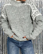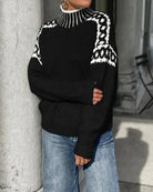 Der Pullover ist perfekt für kühle Tage. Das weiche Strickmaterial und der hohe Kragen halten angenehm warm, während das skandinavische Muster einen zeitlosen und winterlichen Look verleiht.
