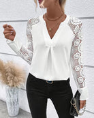 Schicke V-Ausschnitt-Rüschenbluse mit langen Ärmeln