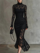 Schickes Hochkragen-Spitzen-Maxikleid