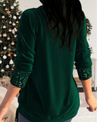 Die 3/4-Ärmel sind mit Pailletten-Details versehen und sorgen so für eine Extraportion Raffinesse. Dank des weichen und elastischen Materials trägt sich das Kleidungsstück sehr angenehm und schmeichelt der Figur. Ideal für ein Abendessen, einen besonderen Anlass oder einen stilvollen Ausgehabend.