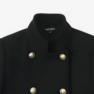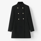 Verleihen Sie Ihrem Herbstoutfit einen Hauch von Retro-Chic mit diesem eleganten schwarzen Wollmantel.