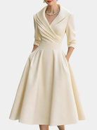 Das Vivienne Midikleid verkörpert das Wesen raffinierter Eleganz. Mit seiner strukturierten Silhouette, dem umhüllenden Oberteil und dem anmutig ausgestellten Rock schmeichelt es der Figur und strahlt klassischen Charme aus. Der taillierte Kragen und die ärmellangen, mittellangen Ärmel sorgen für ein elegantes Finish, das es perfekt für besondere Anlässe oder stilvolle Alltagslooks macht.